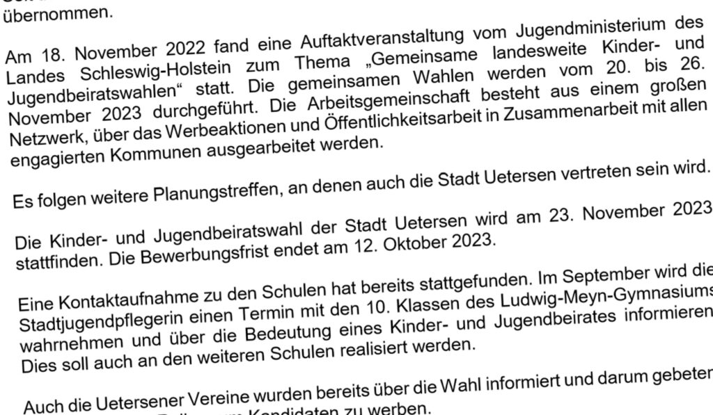 Wir beantragen, dass Kinder und Jugendliche vor der Kinder-und Jugendbeiratswahl 2023 zweimal angeschrieben werden. Einmal, um auf die Bewerbungsfrist aufmerksam zu machen,…
